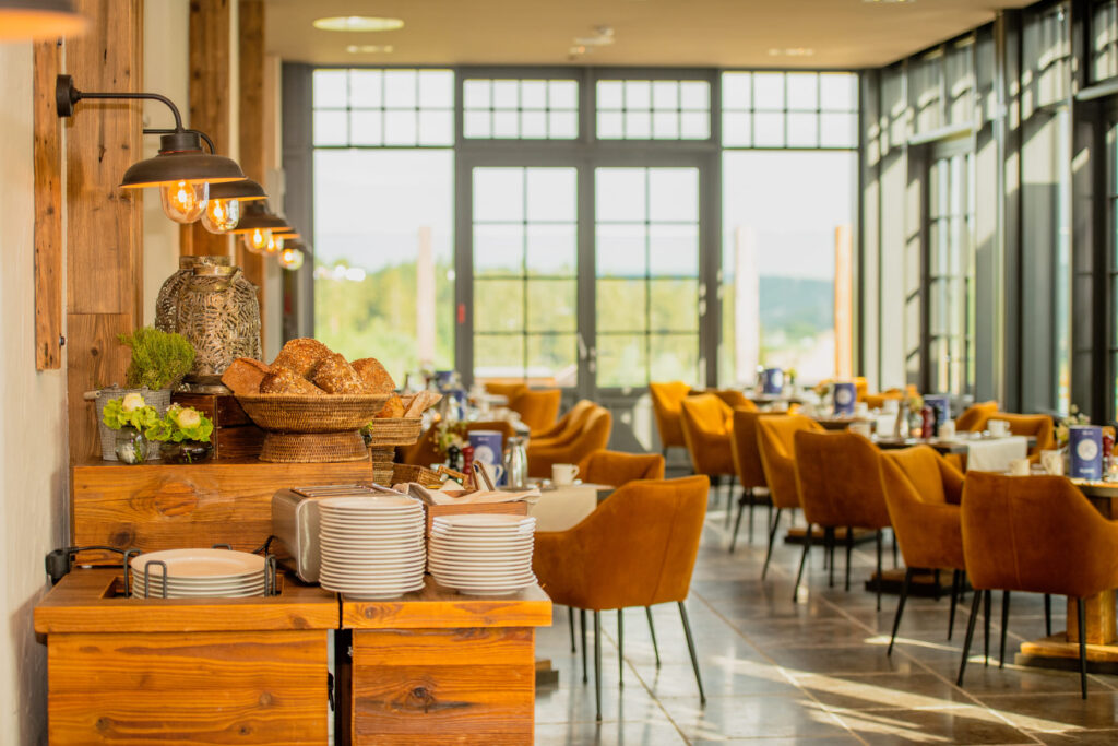 In separaten Räumlichkeiten mit viel Tageslicht und einzigartigem Ausblick werden individuell zusammengestellte und abwechslungsreiche Buffet-Arrangements und Menüfolgen anspruchsvoll für Sie arrangiert.